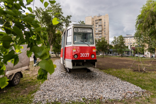 Трамвайный вагон КТМ-5 Усть-Катавского вагоностроительного завода после 33 лет службы поставили на вечную стоянку на маршруте №13. Как заявляют власти города, это не памятник легендарному трамваю №13, а арт-объект.