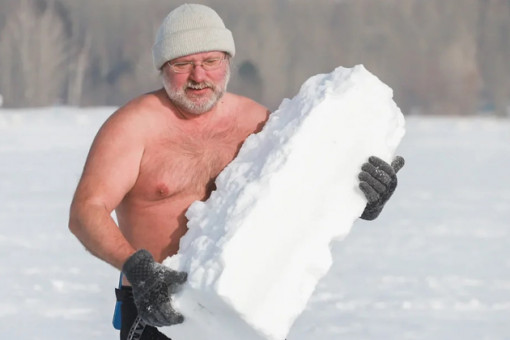 Огненную лошадь из озерного льда в центре Искитима ваяет новосибирец