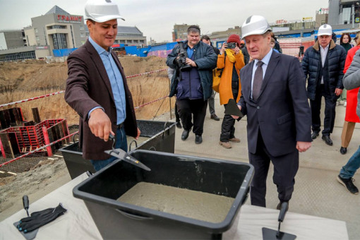 В понедельник, 17 апреля, на площади Маркса представители мэрии и застройщики встретились на стройплощадке левого берега.