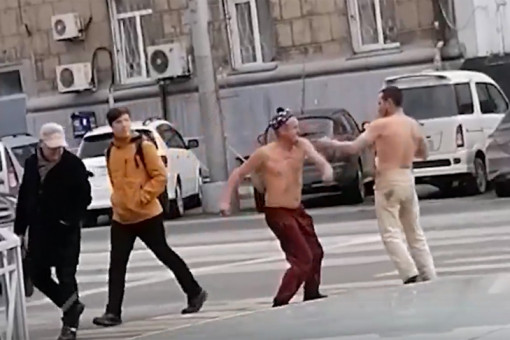 24.10.2022 Полуголые мужчины устроили драку в стиле UFC в центре Новосибирска Двое новосибирцев зрелищно подрались на пересечении улиц Ленина и Челюскинцев на глазах у всех.
