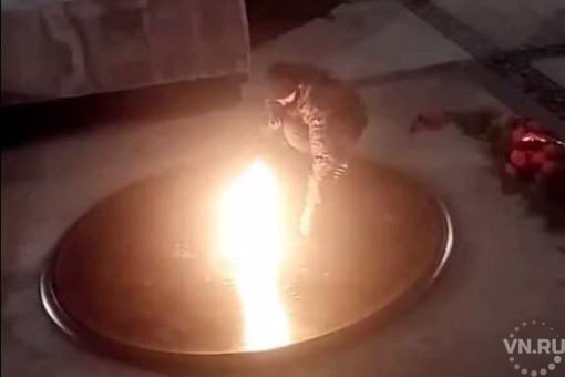 Мужчина, собирающий мелочь в чаше Вечного огня, возмутил новосибирцев. Молодой человек лет тридцати со знанием дела обследовал чашу со всех сторон, собрал монеты, несмотря на пламя, и был таков.