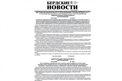 Он содержит постановления администрации города Бердска: