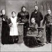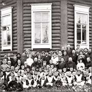 | М.П. Востоков, его жена Мария Васильевна, мать А.И. Востокова (в центре снимка) с дочерью и воспитанниками. 1908 г. |