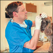 — Ничего страшного, несколько уколов — и будет как новенький, — сообщает Евгений Матвеевич хозяйке кудрявой собаки. — Сегодня же и начнем.