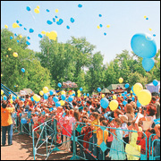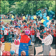 И стартовал бал — салютом. Причем его авторами стали сами ребята. 5 тысяч первоклашек одновременно отпустили в небо воздушные шары. Конкурсы, песни, танцы — все это было для маленьких гостей торжества. Клоуны и герои мультфильмов развлекали выпусников и их мам и пап на 5 игровых площадках. Никто не остался в стороне от всеобщего веселья.