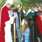- Корона! Всех повешу! Где моя корона? - слышится из-за стен эльфийского города, к которому подступает орда гоблинов. Из толпы выдвигается баллиста - точь-в-точь как настоящая, только меньше. Начинается штурм города. Оканчивается битва полным разгромом гоблинов. Мертвые встают и потихоньку уходят в царство мертвых, где им придется провести ближайшие пять-шесть часов.