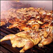 Ладно. Не стоит ждать милостей от Фортуны, если она поворачивается к нам… этой… в смысле, гузкой. Впервые я готовил куриные задницы года три с половиной назад, сымпровизировал блюдо на ходу. Сначала купил американские гузки, тогда еще они стоили 33 рубля за кило на Писаревском рынке и 38 на Центральном. К ним докупил куриных крылышек (в ту пору 60–65 рублей за кило, сейчас — около сотни). Дома взял того и другого граммов по 700, помыл, крылья разделил на фаланги, гузки ощипал и опалил: они обработаны дядей Сэмом почти идеально, но все же только почти. Следующий этап — обжарить гузки и крылышки (лучше — в большой тефлоновой кастрюле-сковородке с крышкой) с каплей растительного масла, парой нарезанных луковиц, лавровым листом и еще какой-нибудь ароматической приправой по вкусу, поскольку жарящиеся гузки и крылья фиалками не пахнут. Обжарив, подлить воды и спокойно тушить до мягкости, а в это время подтащить на стол и нарезать все, что в доме плохо лежит. У меня, например, плохо лежали соленые огурцы, я мелко настрогал граммов триста и бухнул в кастрюлю вместе с четвертинкой лимона, из которой предварительно удалил косточки. Потом развел холодной водой три столовые ложки муки и тщательно размешал этот клейстер. Потом развел полулитром кипятка бульонный кубик и засобачил в кастрюлю бульон плюс почти пол-литра сметаны. Дал вареву прокипеть, досолил и поперчил по вкусу, добавил клейстер, перемешал, снова дал прокипеть с минуту, затем вдохновенно и дерзко подсыпал чайную ложку сахара, две чайных ложки тертого имбиря и 50 г тертой мякоти кокоса (всего этого добра нынче полно в магазинах и рыночных киосках). Затем выключил плиту и, когда субстанция чуть остыла, выдавил в нее пару средних долек чеснока. Все. Поэма экстаза. На гарнир можно сварить рис с добавлением чайной ложки куркумы или карри, а потом нажраться, как питон, лечь на диван кверху пузом и наслаждаться собой…