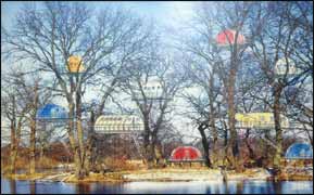 — Разумеется, мои домики можно использовать только в летнее время, — размышляет художник. — И предназначены они, в первую очередь, для людей экстремальных, не боящихся высоты. Они прекрасно подойдут для разного рода спортивных лагерей и туристических баз. Зимой в таких домиках не переночуешь — холодно. Хотя есть у нас в городе любители острых ощущений, которые и зимой в палатках ночуют. Я думаю, что такой вид отдыха на дереве их заинтересует в первую очередь. А можно вообще целый древесный комплекс соорудить, как базу отдыха: на земле столовые и коммунальный сервис, а ночевка — в отдельных номерах в зеленой кроне.