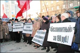 Как известно, владельцам домашних телефонов в соответствии с постановлением правительства установлены три тарифа: повременный, безлимитный и комбинированный. Внимательно изучив особенности новых тарифных ставок, рядовые граждане усмотрели в них явную несправедливость. Так, участники пикета, проведённого 19 января новосибирской организацией «Комитет солидарных действий» («ВН» от 20.01.07), предъявили к ОАО «Сибирьтелеком» следующие требования: исключить из всех тарифных планов обязательные 125 рублей, а размер безлимитного тарифа повысить не на 71 процент, как это сделано, а привести в соответствие с ростом инфляции, который в прошлом году по стране не превышал десяти процентов. Несогласное с требованиями пикетчиков руководство «Сибирьтелекома» в день пикета распространило листовки, в которых изложило свой, естественно иной, взгляд на проблему. А на этой неделе представители «Сибирьтелекома» держали ответ перед депутатами городского Совета.
