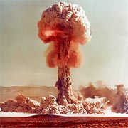 Для испытания водородной бомбы в пустыне был построен целый городок, с пятиэтажными домами, школой, клубом, детским садом. Все было сделано под ключ, с водопроводной водой и электричеством. 22 ноября 1955 года над ним взорвали бомбу. Осталось только ровное место. Даже спустя много лет при воспоминании об этом по коже мурашки бегут. Взрыв был сделан на высоте 1500 метров, вспышка от него была видна за сотни километров. В Семипалатинске, за 200 километров, в домах взрывной волной стекла повыбивало. В Новосибирске дома тряслись так, что посуда со столов падала, думали - стихийное бедствие. Старожилы это помнят, а расстояние до Новосибирска было около 700 километров. Мы находились в нескольких километрах. Всей нашей защитой был холм, на склоне которого мы лежали, он-то и защитил нас от прямого воздействия лучей. У меня просто нет слов, чтобы описать весь пережитый тогда ужас. Словами это не выскажешь.
