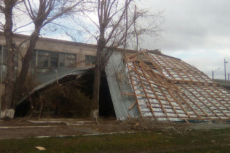 Штормовой ветер сорвал листы железа с крыши дома №42 на улице Богдана Хмельницкого. На Кирова, 321 ветром загнуло край кровли. На место выезжал экипаж муниципальной аварийно-спасательной службы для устранения угрозы падения и закрепления листов. На Бориса Богаткова, 165/4 на строительной площадке ветром оторвало листы забора.