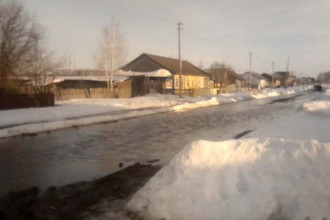 Владельцы дачных участков в Бердске добираются до своих участков буквально вплавь. Талые воды из полей стекают вниз по дороге, местами глубина достигает одного метра.