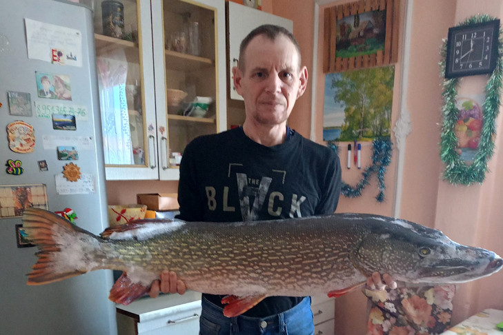 Щуку-толстушку выловил в крещенский мороз рыбак под Новосибирском