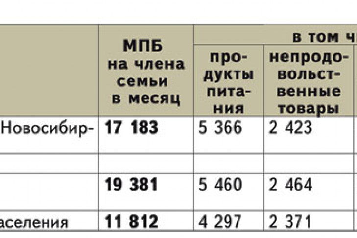По расчетам министерства труда, занятости и трудовых ресурсов Новосибирской области минимальный потребительский бюджет на одного члена семьи, определяемый в соответствии с Указом Президента Российской Федерации от 2 марта 1992 года № 210 «О системе минимальных потребительских бюджетов населения Российской Федерации», на 01 апреля 2014 года составил (см. Таблицу 2)