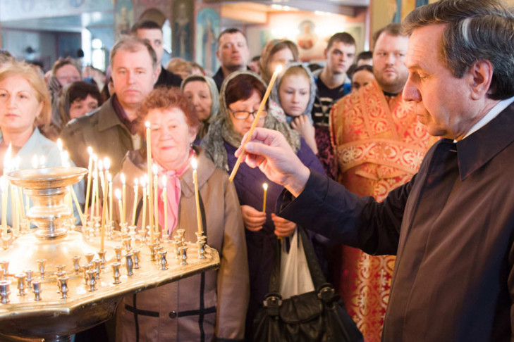 На торжественной службе присутствовали и первые лица региона, в том числе временно исполняющий обязанности губернатора области Владимир Городецкий, председатель Законодательного собрания Иван Мороз. Врио главы региона поздравил всех жителей области с праздником, пожелал здоровья и радости.
