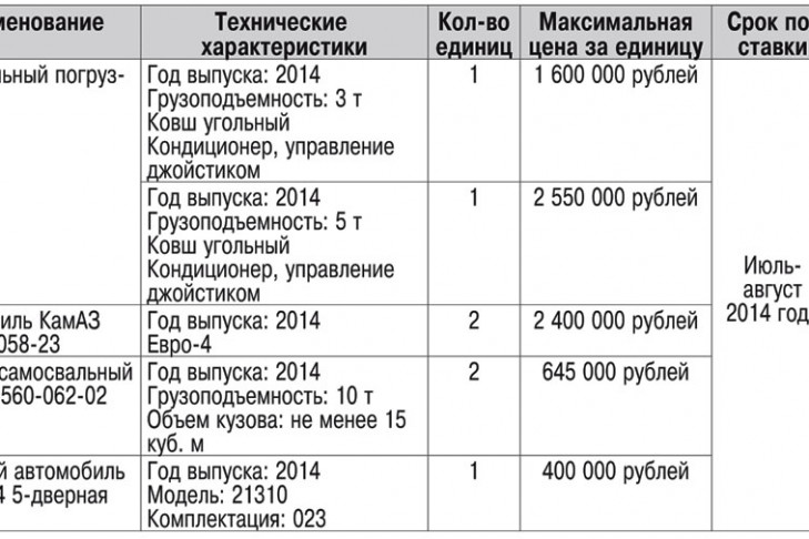 2. Предмет договоров: приобретение автотранспортных средств и спецтехники в 2014 году.