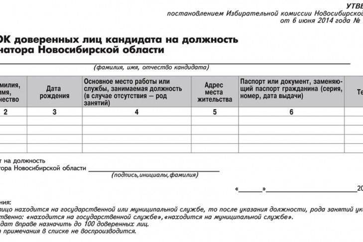 О форме списка лиц, которые поставили свои подписи в листах поддержки кандидата на должность Губернатора Новосибирской области