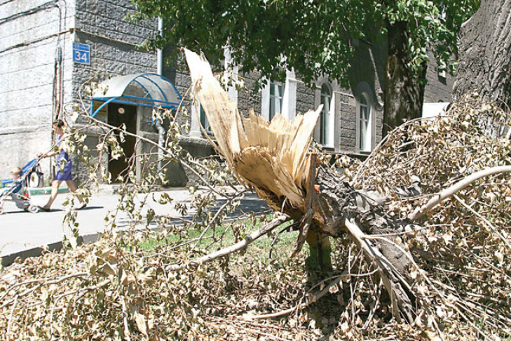 Один из сильных ударов урагана принял Кировский район Новосибирска. На дом № 40 на улице Сибиряков-Гвардейцев повалилось дерево. Старый клен совсем не по-песенному простучал по решеткам окон первого этажа, закрыл и второй этаж. Распилили ствол в ближайший рабочий день — в понедельник, 14 июля. Оперативно или нет? Судить вам. Надломленные деревья у дома № 123 по улице Немировича-Данченко тоже распилили, ветки сложили на газон, и там они покоились в кучах девять дней — до 22 июля.