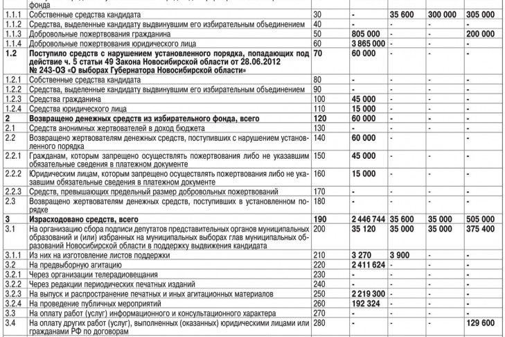 Первый финансовый отчет о поступлении и расходовании средств избирательных фондов кандидатов на должность губернатора Новосибирской области