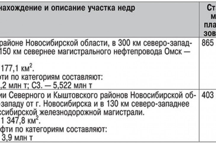 Департамент по недропользованию по Сибирскому федеральному округу извещает о предстоящем проведении аукционов на право пользования недрами с целью геологического изучения (поисков и оценки), разведки и добычи нефти на участках недр Восточный и Межовский в Новосибирской области