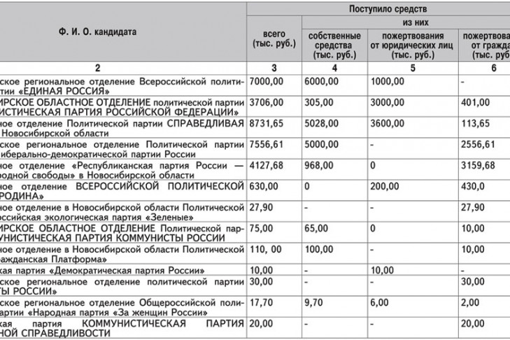 Сведения о поступлении и расходовании средств избирательных фондов избирательных объединений и средств избирательных фондов кандидатов в депутаты Законодательного собрания Новосибирской области по состоянию на 29 июля 2015 год
