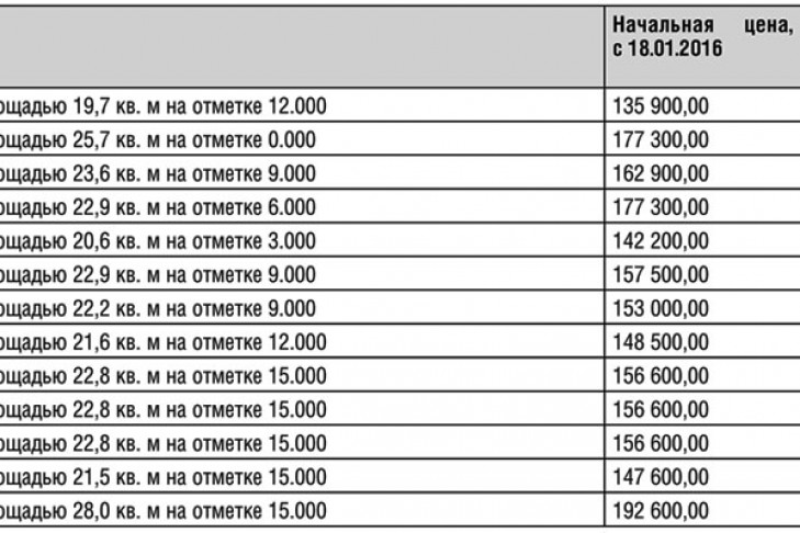 Победителем торгов признается участник торгов, который первым представил в установленный срок заявку на участие в торгах, содержащую предложение о цене по лоту не ниже начальной цены, установленной для определенного периода проведения торгов. Подведение итогов торгов производится 18.02.2016 в 10:00 на сайте электронной площадки «Сбербанк-АСТ». Договор долевого участия с победителем торгов заключается конкурсным управляющим в течение пяти дней с даты получения предложения конкурсного управляющего заключить договор купли-продажи, срок платежа по договору — 30 дней с даты заключения договора купли-продажи. В случае отказа или уклонения победителя торгов от подписания данного договора в течение пяти дней с даты получения предложения, а также в случае неоплаты по договору долевого участия в течение 30 дней со дня его подписания внесенный задаток победителю торгов не возвращается, конкурсный управляющий вправе предложить заключить договор долевого участия участнику торгов, заявка которого соответствует условиям торгов и поступила следующей за заявкой победителя торгов либо содержит следующее за победителем торгов ценовое предложение. Реквизиты для внесения задатков, платежей по договору участия в долевом строительстве: ООО «Алекс-Строй», ИНН 5410007680, р/с 40702810104000001351 в Сибирском филиале ПАО «Промсвязьбанк», г. Новосибирск, к/с 30101810500000000816, БИК 045004816.