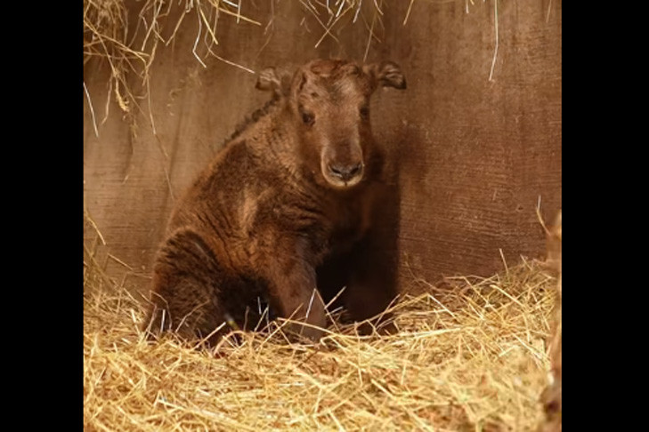 Золотистые такины славятся своей необычной внешностью, которая сочетает в себе черты коровы, антилопы и козы. С возрастом шерсть детеныша приобретет тот самый знаменитый золотистый оттенок, за который вид получил свое название.