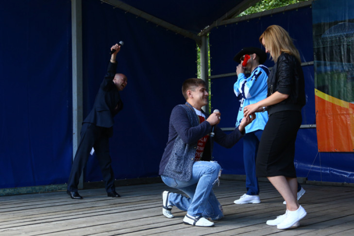 - Я гулял в «Бугринской роще», позвонил Усатому в каске, а он говорит: подходи к центральной сцене - здесь сейчас конкурсы проходят, - рассказывает новоиспеченный жених Антон Карташев. - Я и подошел со своей девушкой Натальей. А когда предложили признаться в любви городу, я решил, что нужно сделать Наташе предложение со сцены. Несколько дней носил в кармане кольцо.