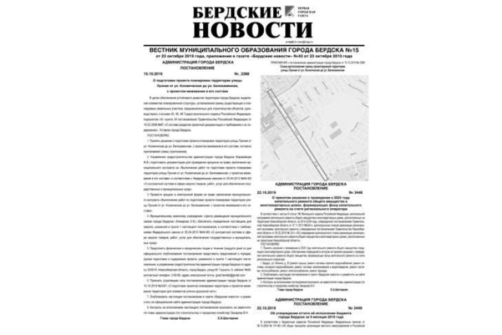 № 3449 от 22.10.2019 «Об утверждении отчета об исполнении бюджета города Бердска за 9 месяцев 2019 года»;