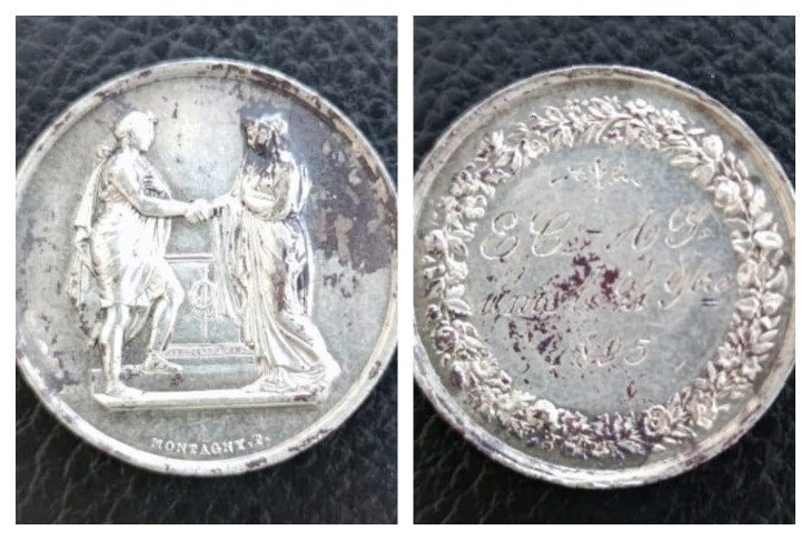 Житель Новосибирска откопал в огороде французскую свадебную медаль XIX века