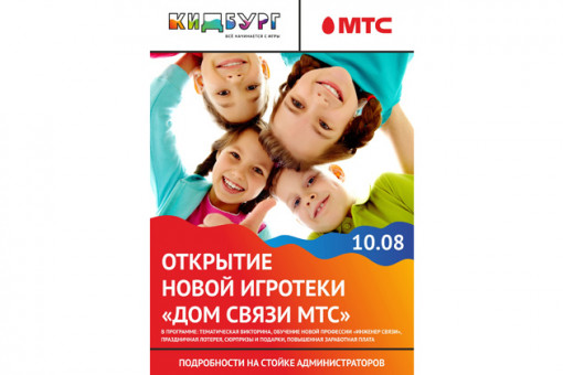 В Новосибирском ТЦ МЕГА 10 августа в городе профессий Кидбург начнет работать площадка для получения новой специальности - инженер связи. Торжественное открытие Дома связи состоится в 15.00. Партнером в открытии новой локации стала компания МТС, один из крупнейших телеком-операторов в России.