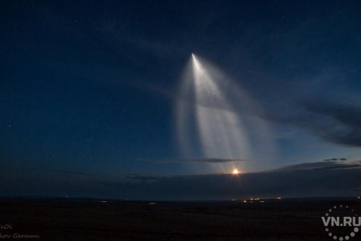 Пролет ракеты «Союз-ФГ» с тремя космонавтами, запущенной с Байконура на МКС, снял астрофотограф из Новосибирска Герман Марков. Пуск было видно в НСО, но для более качественных снимков фотограф отправился на Алтай. На кадрах хорошо видно «медузу» ракеты. По словам очевидцев, можно было услышать звук разрыва отработавшей второй ступени.