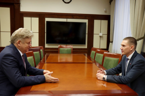 Полномочный представитель Президента Российской Федерации в Сибирском федеральном округе Анатолий Серышев обсудил со своим подопечным – участником программы «Время героев», Героем Российской Федерации, майором Егором Захаровым промежуточные итоги второго этапа стажировки в аппарате полпреда.
