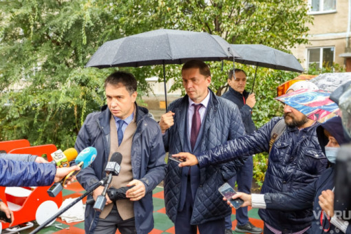 Депутат Государственной Думы РФ Виктор Игнатов и председатель Совета депутатов города Новосибирска Дмитрий Асанцев проверили готовность трех детских площадок, установленных в рамках партийного проекта «Единой России» «Территория детства».
