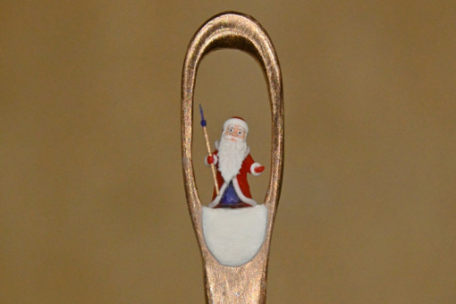 К новогодним праздникам новосибирский умелец Владимир Анискин, известный своими работами, которые можно разглядеть только под микроскопом, подготовил две тематические миниатюры. Крошечные Дед Мороз и новогодний Лось уместились внутри ушка… золотой иголки.