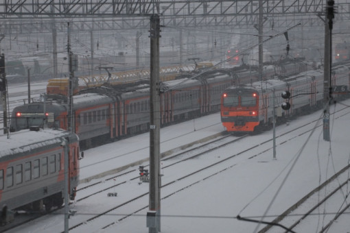 Поезд Барнаул-Татарская застрял в метель на станции Табулга под Новосибирском