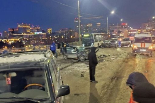 Октябрьский мост в Новосибирске перекрыли после массового ДТП