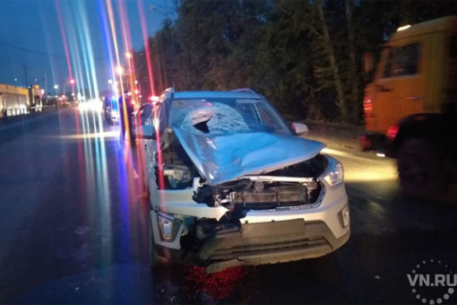 Два автомобиля влетели лоб в лоб на полном ходу на улице Большевистская в Новосибирске. Есть погибшие и пострадавшие.
