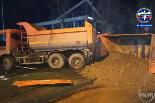Тяжелые машины столкнулись на улицах Новосибирска. Один КамАЗ опрокинулся и высыпал груз из кузова, второй устоял на колесах, но получил серьезные повреждения кабины. Оба водителя пострадали.
