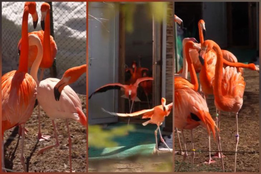 В Новосибирском зоопарке имени Р.А. Шило наступила настоящая весна: одни из самых изящных обитателей — фламинго — покинули зимние павильоны. Теперь в теплые солнечные дни посетители могут любоваться прогулками этих грациозных птиц у берега озера.