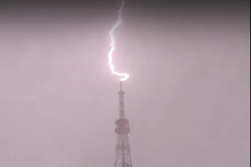 Громом и молниями завершился аномальный ливень 10 февраля в Новосибирске. Разряд попал в острие телевышки на улице Римского-Корсакова.