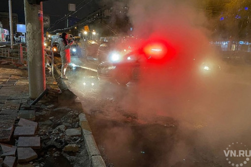 На пересечении Вокзальной Магистрали и проспекта Димитрова в Железнодорожном районе Новосибирска вечером 7 октября прорвало теплотрассу. В яму на месте прорыва провалился хэтчбек Ford Fusion